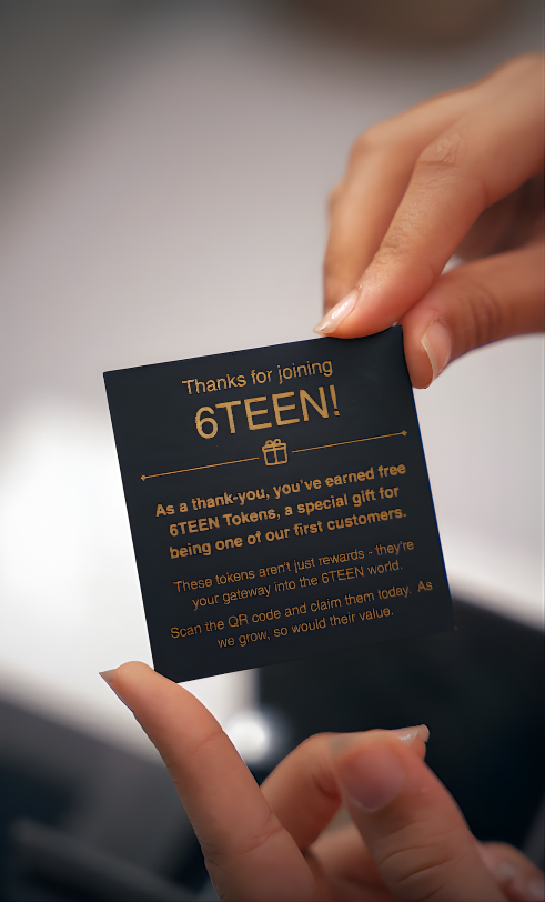 Your fragrance is your digital key. Every bottle of VIBE and YOLO comes with a smart tag (QR code) that instantly connects you to the 6TEEN movement. Tap to unlock exclusive rewards, creator community, and The Shared VIBE.